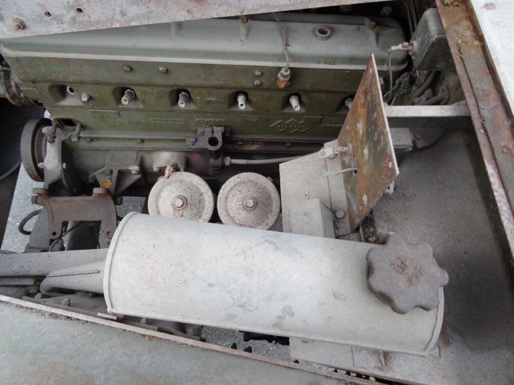 Moreover the entire rear Armour is missing and need to be refabricated. Same for the rear bed, storage cabinets and many brackets, seats and clamps. For undefined reasons the engine was roughly opened but never finished. Same for the gearbox what resulted in the fact that water entered the transmission.